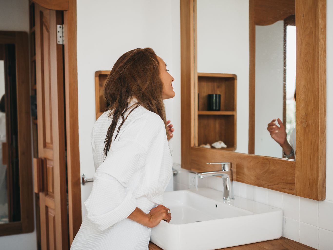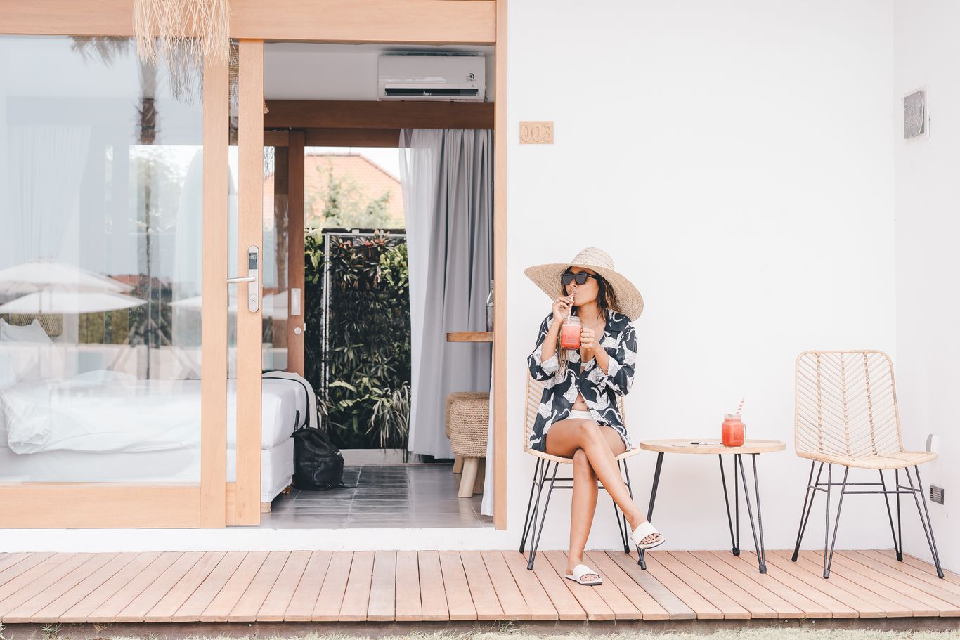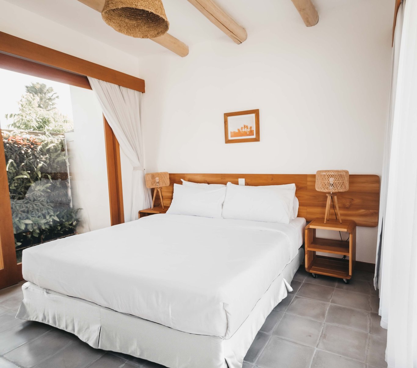 The 14 rooms that make up Canggu Village Accommodation bring together island living with modern sophistication. Both the pool access and pool view rooms offer warm, inviting interiors filled custom-made, recycled wood furnishings, tropical plants and crisp white linens.